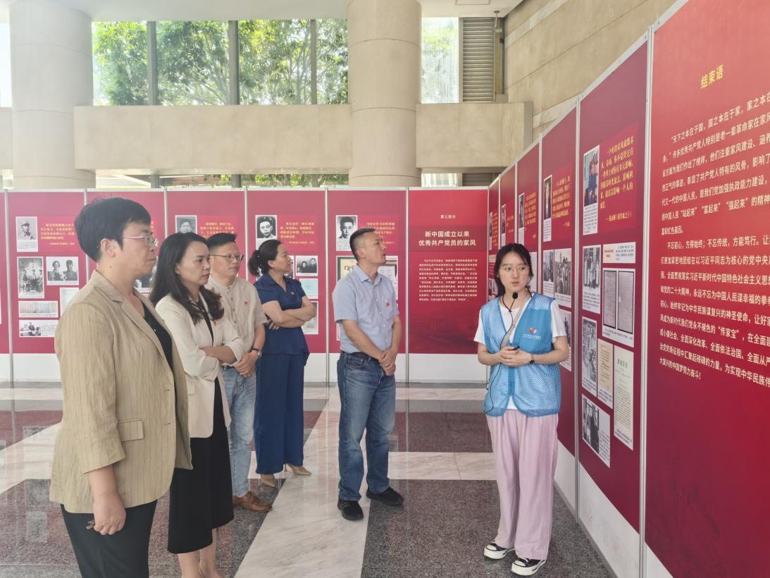 在正妹av 闵行校区法商楼一楼大厅,党员们参观了《中国共产党人的家风展》,学习老一辈革命家、革命先烈及新中国成立以来优秀共产党员的红色家风,汲取精神之源,凝聚奋进力量。