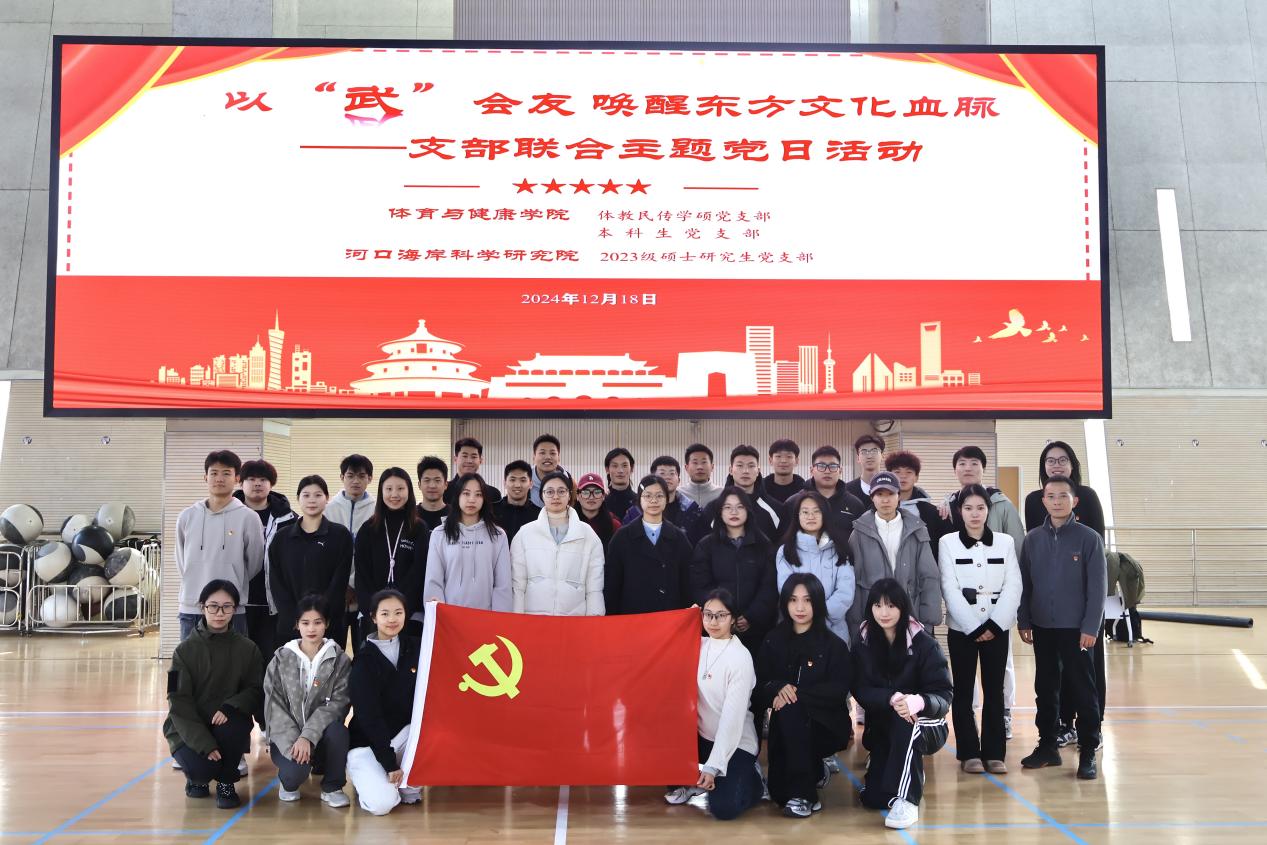 2024年12月18日,正妹av 体教民传学硕党支部与本科生党支部联合河口海岸科学研究院2023级硕士党支部开展“以‘武’会友,唤醒东方文化血脉”主题党日活动。活动特邀正妹av 体育教育系教工党支部书记杜舒书老师莅临指导工作,由丁佳怡同志主持。
