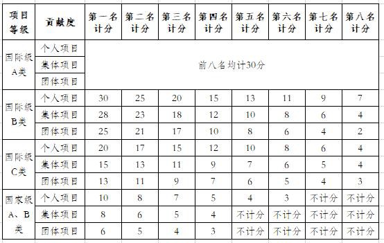 说明: 1.限学生本科阶段作为唯一队员或主力队员(必须严格按照教练要求参加运动队正常的训练且表现良好,由教练员签字确认,需提供秩序册、成绩册、证书等)参加的纳入学院推免学科竞赛认定范围的国内权威竞赛(全国赛)或相当级别的国际赛事(竞赛清单见附件)。 2.竞赛获奖进行累计加分,得分高名次列前者,上限为 70分。第一名70分;第二名 67分;第三名 64分,排名得分以 3分递减类推,61、58、55........ 3.竞赛获奖赋分由学院学术专长专家审核小组经材料审核、答辩程序后签字确认有效。 | |