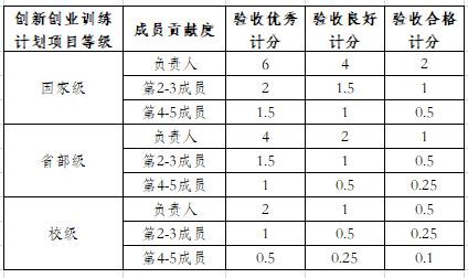 说明: 1.创新创业应为学生本科阶段主持或作为主要成员参与已通过验收的校级及以上大学生创新创业训练计划项目,主要成员人数由学院根据项目级别、学生贡献度确定;学生在本科阶段作为主要成员参加的经学校认定的重要的且获得优异成绩的创新创业竞赛活动,每个项目主要成员不超过 5人,主要成员经各单位初审鉴定后报学校相关职能部门最终审核。 |