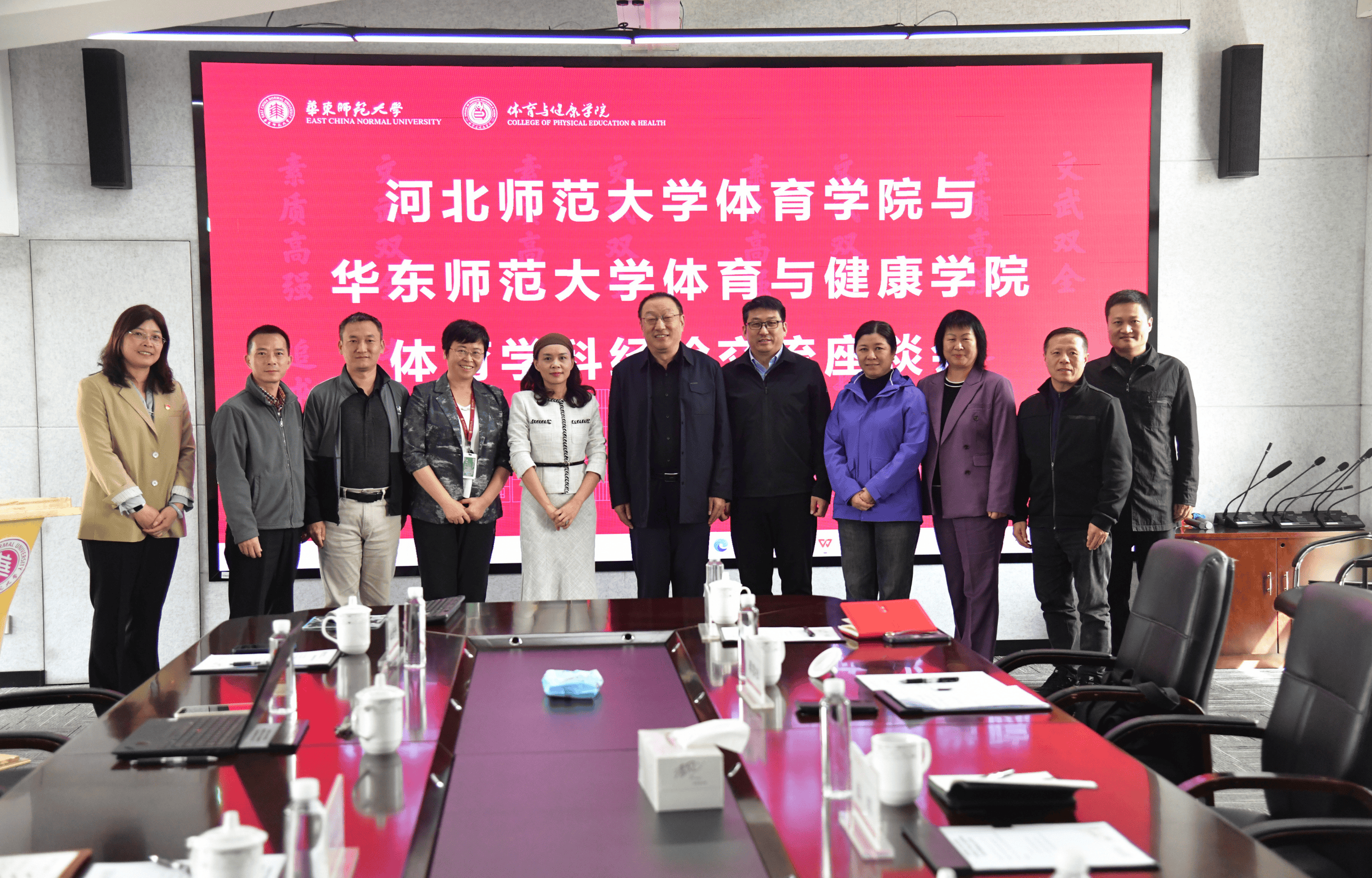 • 为共促体育学科高质量发展,2025年10月22日上午,河北师范大学体育学院党委书记张晖,院长陈巍,副院长薄雪松,教授、博士生导师刘春燕,体育文化传播系主任王淑英,实验室主任霍洪峰来我院开展专题调研。我院党委书记黄岚兰、院长汪晓赞、副院长马德浩、体育教育系党支部书记杜舒书、办公室主任金燕参加座谈会。