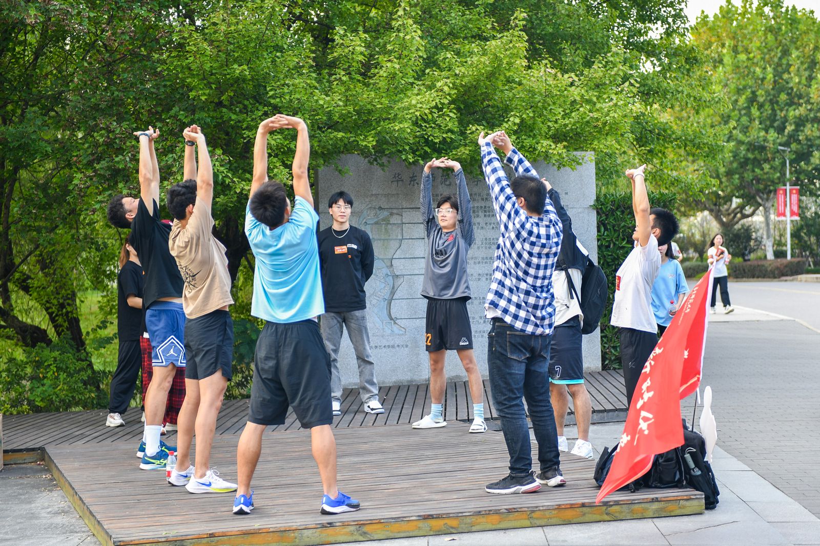 本次活动共设置12个关卡,分别位于学生公寓、秋实阁、图书馆、大学林、文脉廊等校内标志性地点。关卡内容包括党代会和校史知识问答、体育竞赛、即兴授课等丰富的内容,参赛选手需按照规定线路完成打卡点任务,路线全程5公里,对体能、技能、知识储备及团队协作精神有多重考验。