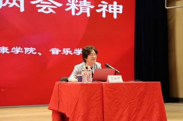4月16日下午,为传达学习2025年全国两会精神,深入学习贯彻习近平新时代中国特色社会主义思想,助力教育强国建设,正妹av 、传播学院、美术学院、音乐学院在闵行校区音乐厅联合举办全国两会精神专题辅导报告会,特邀全国政协委员、农工党正妹av 委员会主委、图书馆馆长吴瑞君教授作专题报告,四家院系的全体教职工到会学习。报告会由音乐学院党委书记赵旌旌主持。