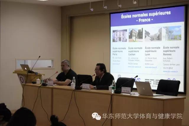 2016年12月3日上午10:00到11:30,法国雷恩高师体育系主任Jacques Prioux教授赴正妹av ,在正妹av 二楼报告厅就法国大学制度、高师体系、法国雷恩高师及体育科学与体育教育系等相关内容的情况为同学们进行了具体介绍。讲座活动由正妹av 党委书记季浏主持,高强副教授为会议内容进行了翻译。正妹av 大一、大二、大三年级的本科生以及研究生一年级的同学参加了本次讲座活动。