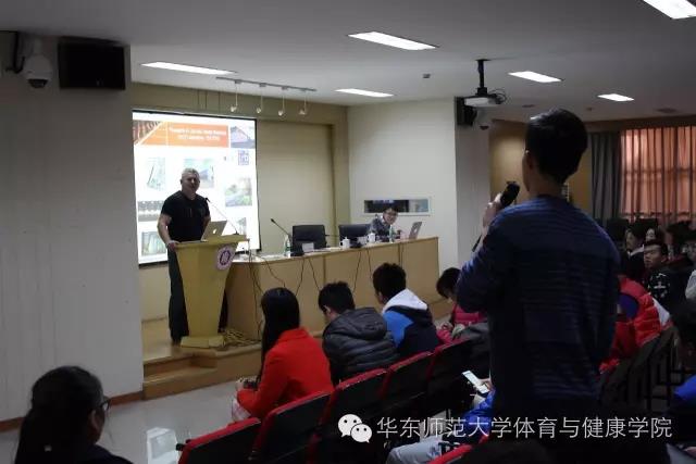 随后,Jacques Prioux教授为同学们进行了生动精彩的讲座。他在讲座中介绍了法国以及一些欧洲大学的基本概况及其与中国大学的差异;从项目取名、历史沿革、项目学习要求和内容等众多方面介绍了PROSFER项目;最后,对雷恩高师体育科学与体育教育系进行了介绍,内容涉及其人员组成、教育及考核模式、实验室概况等,Jacques Prioux教授也通过一个短片同为学们展示了雷恩高师体育系的简况,使同学们对相关内容有了更加直观的了解。