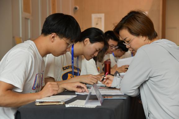 清晨8时30分,负责酒店接待的报到组早已就位,名单核对、材料分发、扫码入群、房间安排,多项流程都井然有序的进行着。