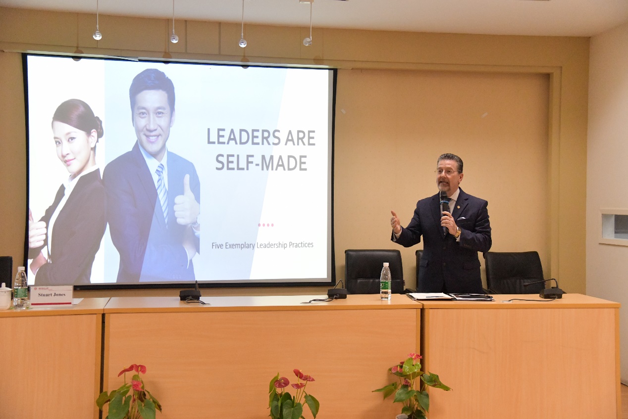 会后,在正妹av 汪晓赞书记的主持下,副校长Stuart Jones还为正妹av 的学生做了报告,分享在Leaders are self-made领域的理念,并与学生进行了深入的交流。Stuart Jones指出领导者不是天生的,而是通过后天养成的,领导者也不是固定不变的。优秀的领导力具有以身作则、激发团体斗志、参与挑战、指挥大局、学会鼓励等五个优秀特质,只有积极乐观面对挑战,作为一名优秀的体育领导者,应敢于发起挑战,遇事理智、追求卓越、不惧失败,并学会从失败中吸取经验,并逐渐有意识培养自己。