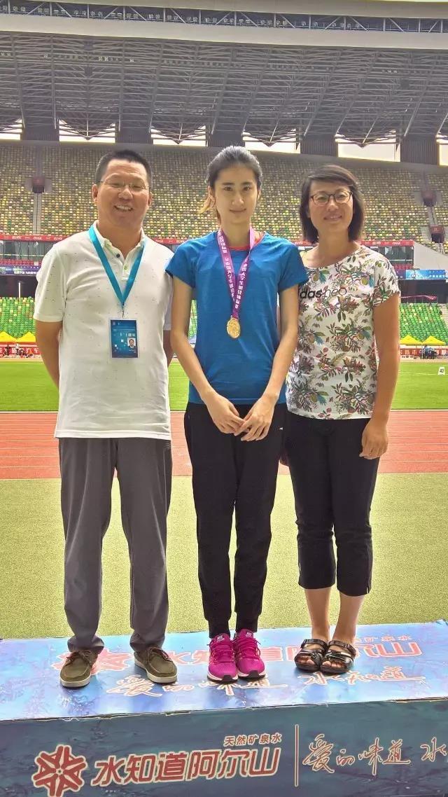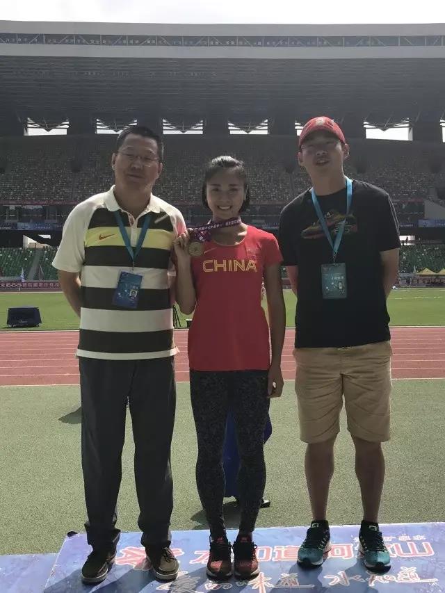 女子三级跳远和跳远双料冠军——陈婷(中)