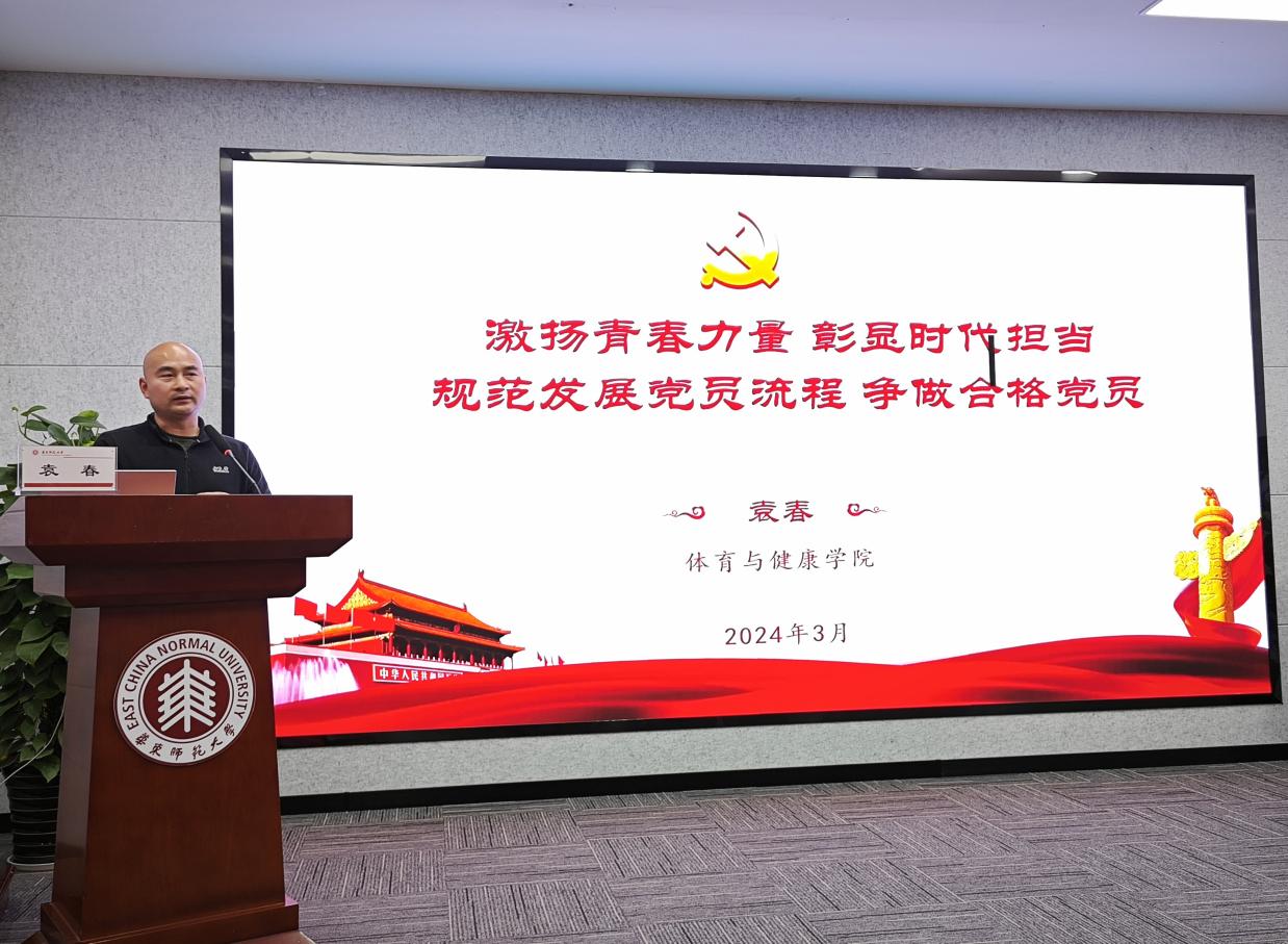 随后,袁春以“激扬青春力量,彰显时代担当,规范发展党员流程,争做合格党员”为主题进行了党课宣讲。党课主要分为“青年和党组织的双向奔赴”“为什么要加入中国共产党?”以及“如何加入党组织”三个板块。课堂强调了青年在国家兴旺发达和民族振兴中的关键作用,通过介绍一些近代中国跨时代意义的革命运动,如辛亥革命、新文化运动、五四运动等向积极分子们展现了中国青年在社会动荡时中流砥柱的重要作用,并引用了习近平总书记在中国共产党第二十次全国代表大会上的讲话,激励青年坚定信念、勇担责任,为实现中华民族伟大复兴贡献力量。