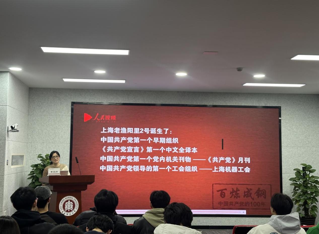 黄亚玲为积极分子们带来了一场主题为“从渔阳里到一大——石库门里的建党精神”的专题讲座。此次授课内容主要分为三大篇章:渔阳里的历史印记、中共一大的辉煌篇章和激荡人心的建党精神。