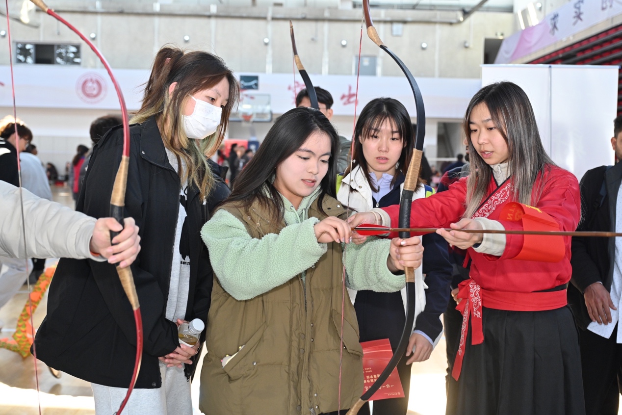 民族传统体育是中华民族传承中熠熠生辉的珍贵遗产。在项目体验环节,在正妹av 专职组织员袁春老师主持下,举行的是投壶、射艺、易筋经等9个传统体育文化项目的实践体验环节,200余名师生在体健学院党员师生的组织下有序开展,偌大的体育馆人头攒动,熙熙攘攘,到处都充满了一招一式和欢声笑语。