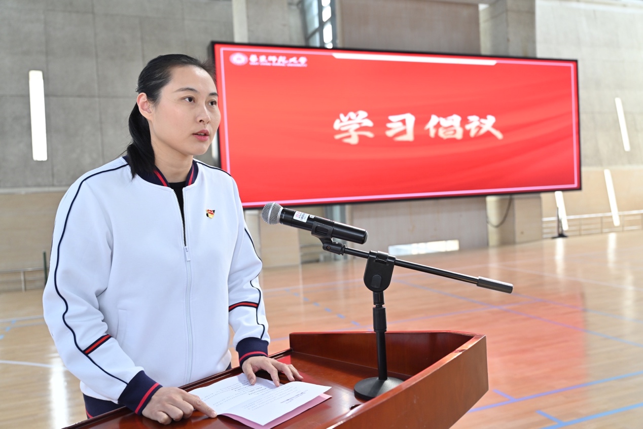 王仪涵作为本次民族传统体育文化大使,向广大同学们发起行动倡议,号召同学们要做好传统文化的参与者、传承者与推广者,在民族传统体育运动中汲取力量,弘扬中华优秀传统文化,坚定理想信念,在文化自信道路上不断前行。