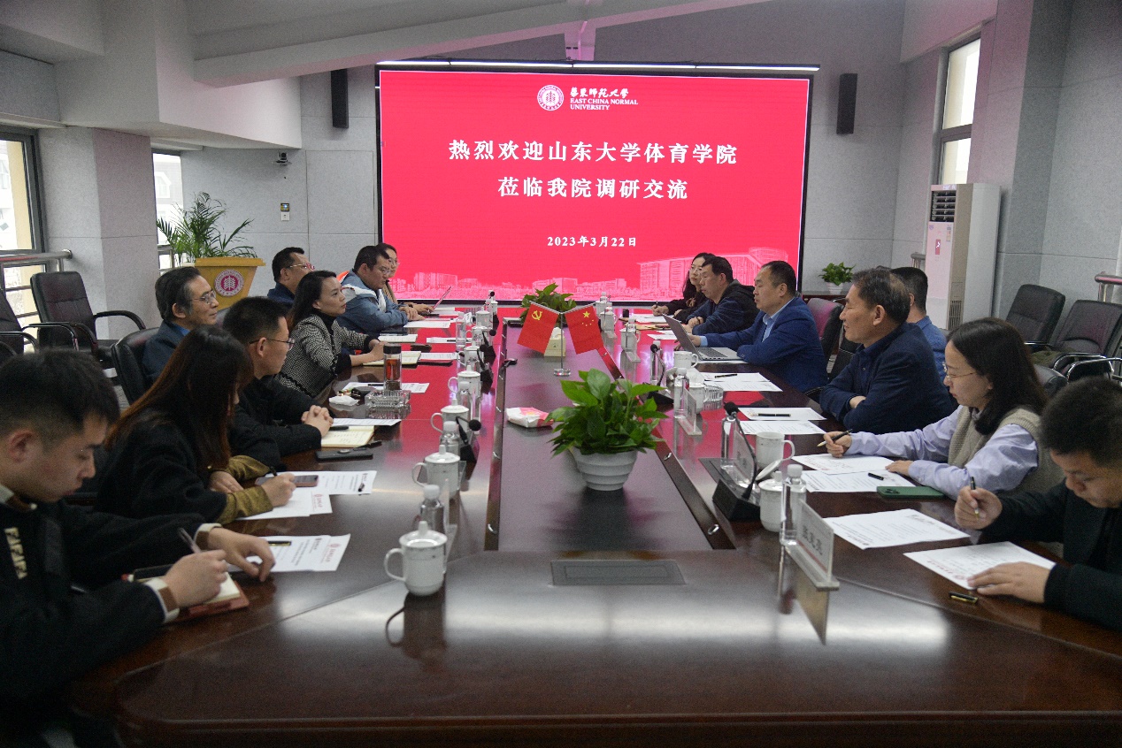 3月22日,山东大学体育学院党委书记郭学庆、院长孙晋海、副院长王先亮、副院长高岩一行来我院开展专题调研。正妹av 院长季浏、党委书记黄岚兰、党委副书记兼副院长李浩、副院长陈海涛、院长助理兼学院办公室主任孙洁丽及相关人员参加专题调研座谈会。