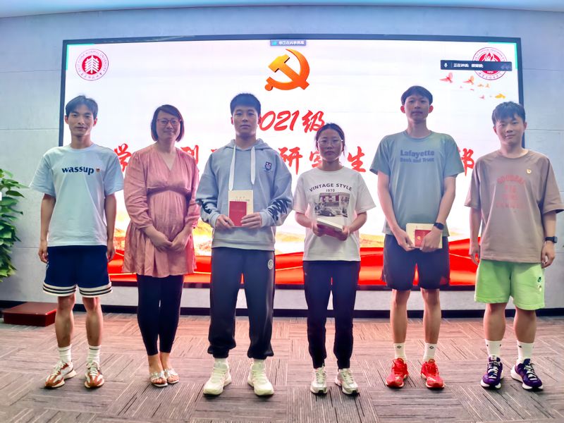 交流学习后,虞轶群对几位新加入党支部的党员表示祝贺,并向他们发放了党章、党徽及学习用书,勉励他们要继续认真学习习近平新时代中国特色社会主义思想主题教育,强化理论知识、提升思想境界,坚定理想信念,加强与同志间的交流,争当先进、勇做表率。虞轶群对全体学生党员和积极分子强调:“我们要以此次思想主题教育为契机,加强党的创新理论学习,不断提高支部全体党员理论水平,为奋进新征程凝心聚力、踔厉奋发、勇毅前行。”