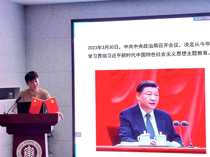 郑晨樱:“目前世界正处于百年未有之大变局,我们面临着诸多挑战和机遇,要始终坚持科学理论武装全党,指导实践,推进工作,成就辉煌。作为党员我们应当坚定不移听党话,跟党走,努力成长为堪当中华民族复兴重任的时代新人。”