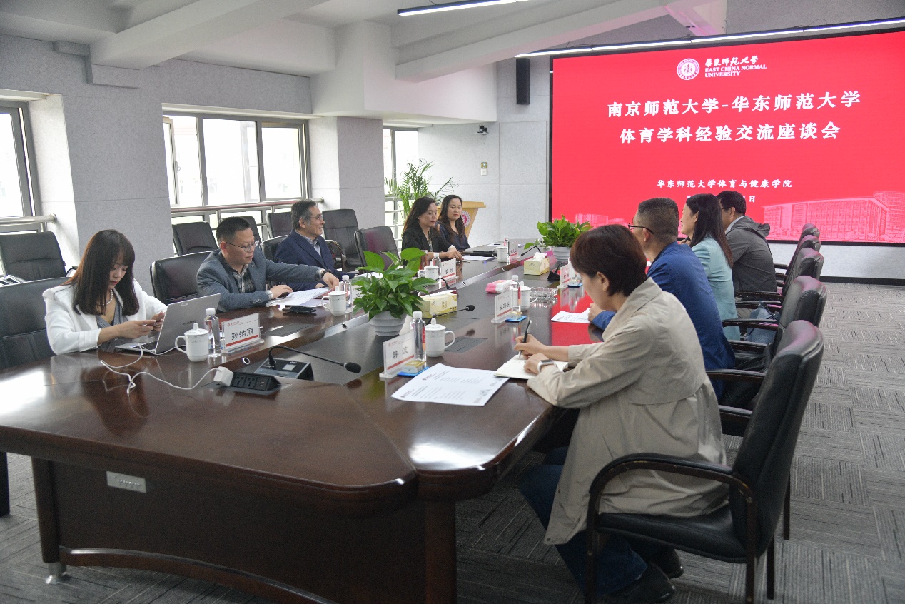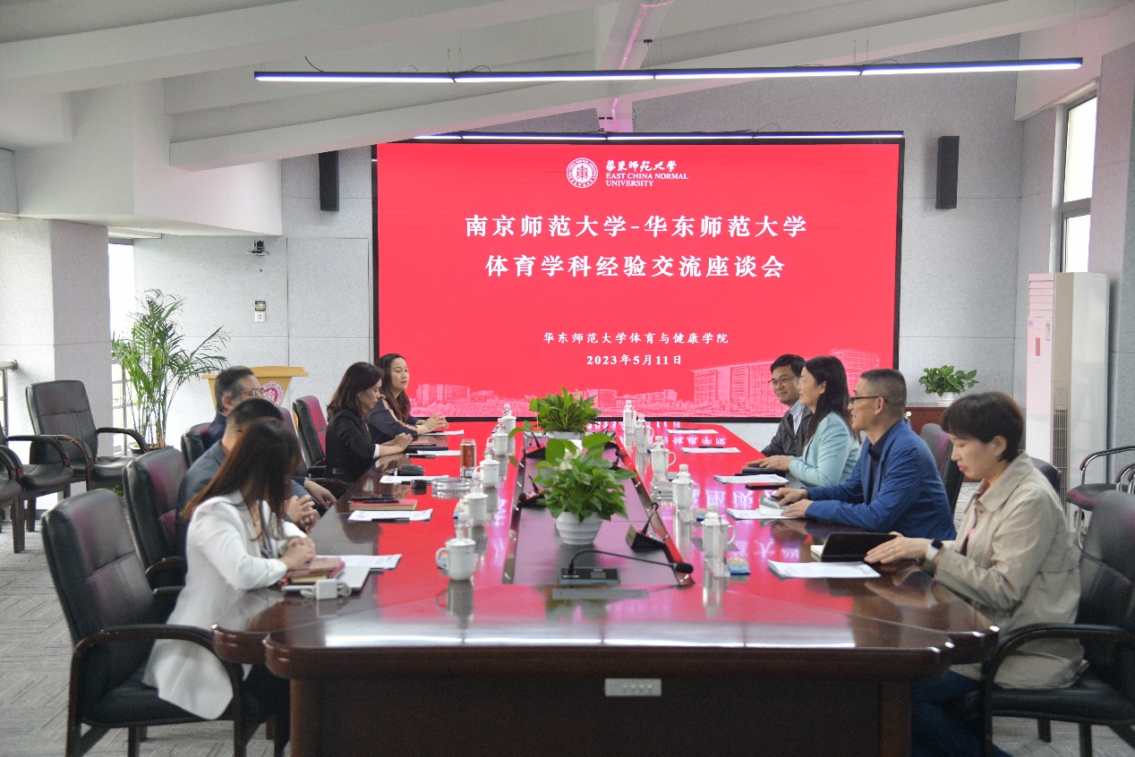 为进一步落实主题教育“学思想、强党性、重实践、建新功”的总要求,大兴调查研究,助推学院学科专业建设,5月11日,南京师范大学体育科学学院党委书记徐锋、院长史曙生、副院长李方晖、副院长韩波、院长助理刘东升一行来正妹av 进行体育学科专题调研。正妹av 院长季浏、党委书记黄岚兰、党委副书记兼副院长李浩、副院长刘微娜、院长助理兼学院办公室主任孙洁丽参加座谈会。会议由季浏主持。