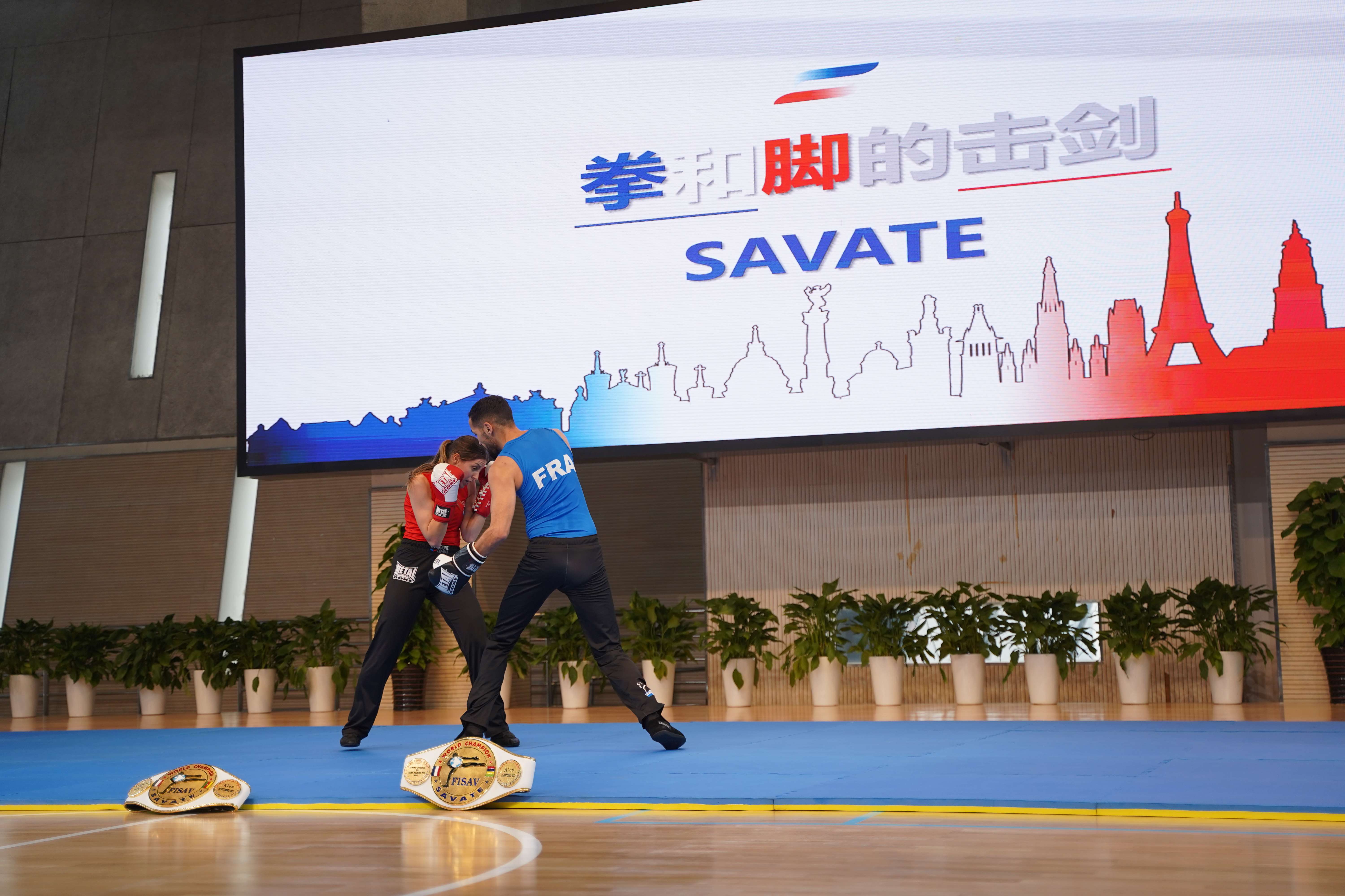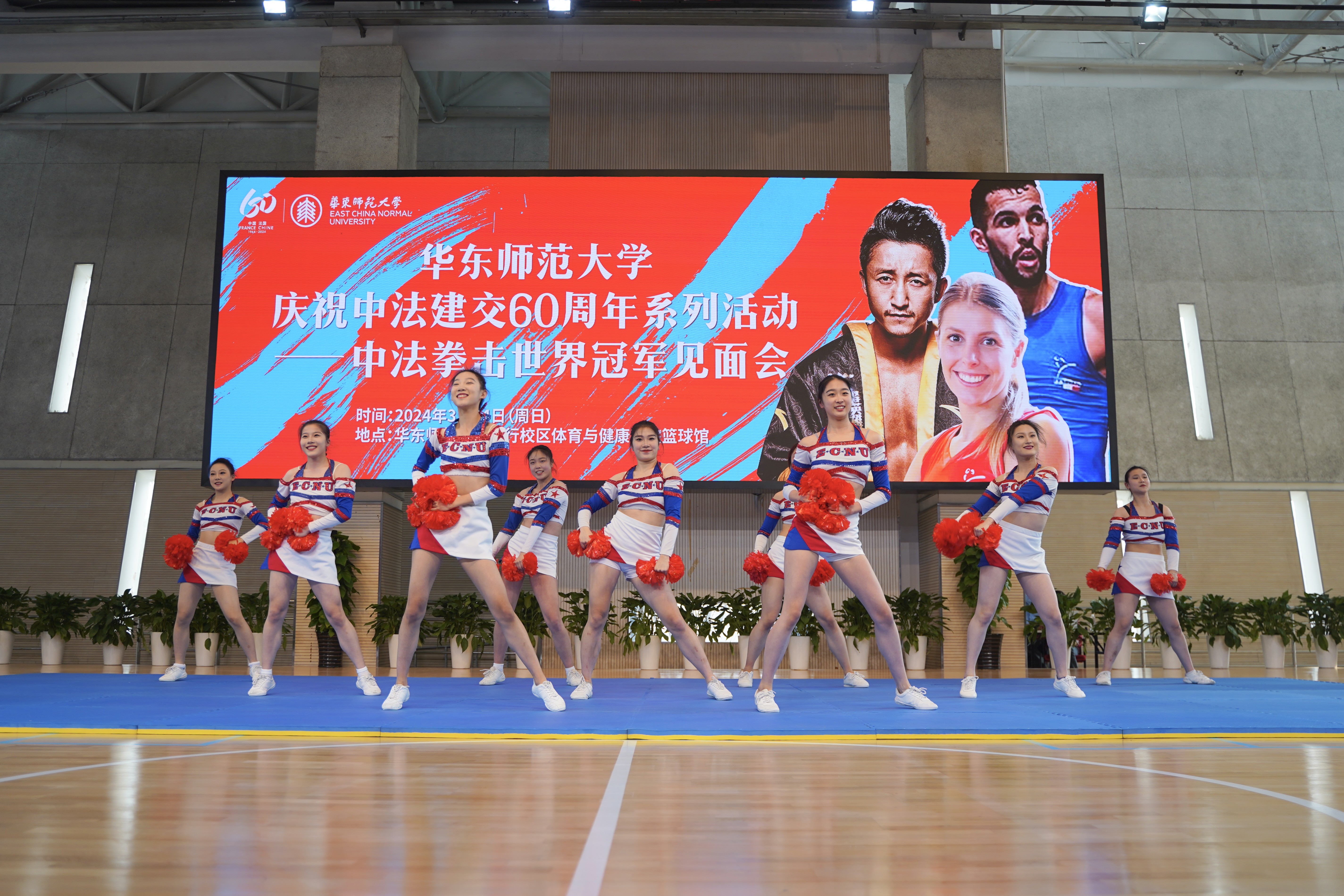 3月24日下午,法式拳击冠军代表团到访华东师大,中法拳击世界冠军见面会在闵行校区篮球馆举行,1000人的观众席座无虚席,活动精彩纷呈。