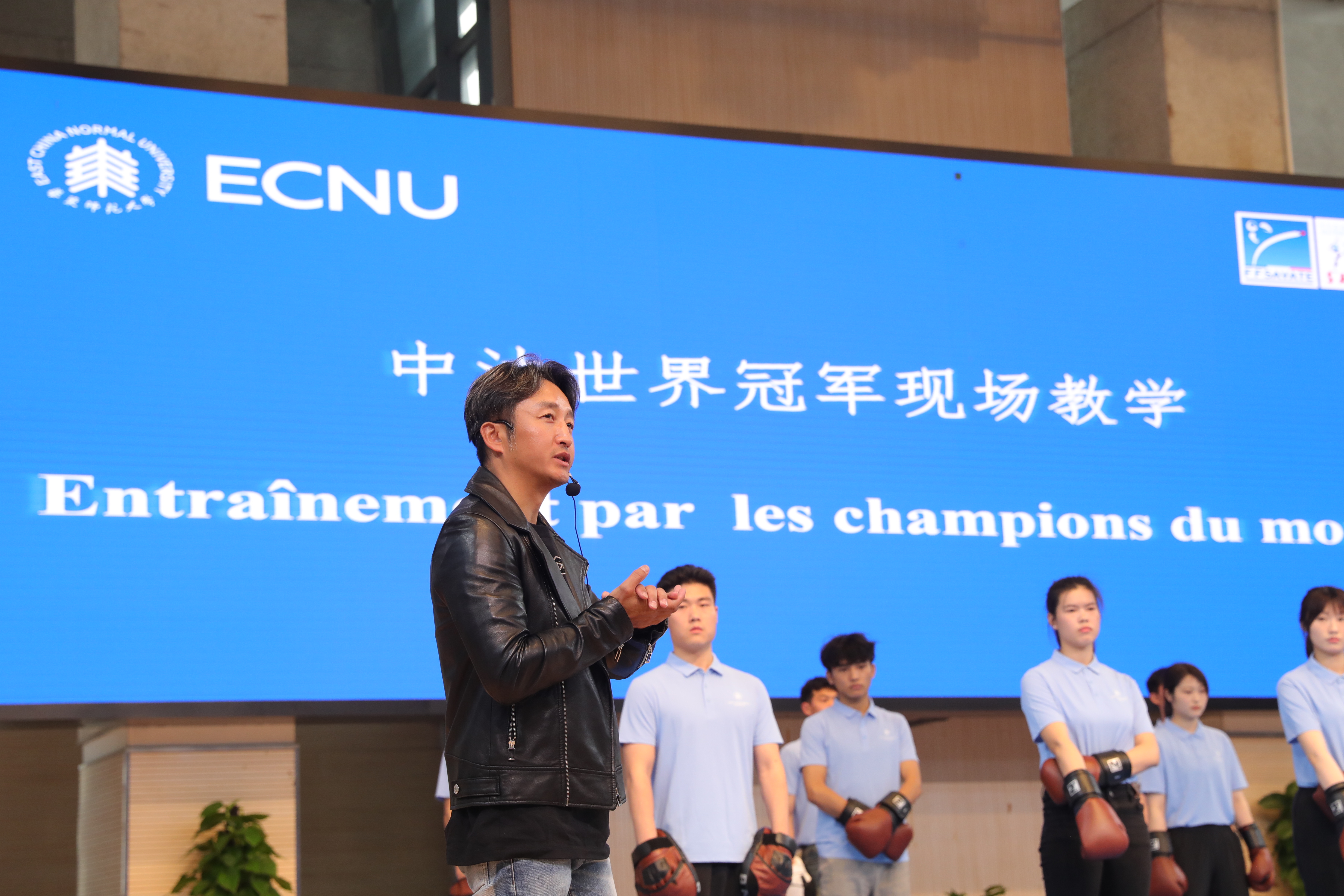 3月24日下午,法式拳击冠军代表团到访华东师大,中法拳击世界冠军见面会在闵行校区篮球馆举行。