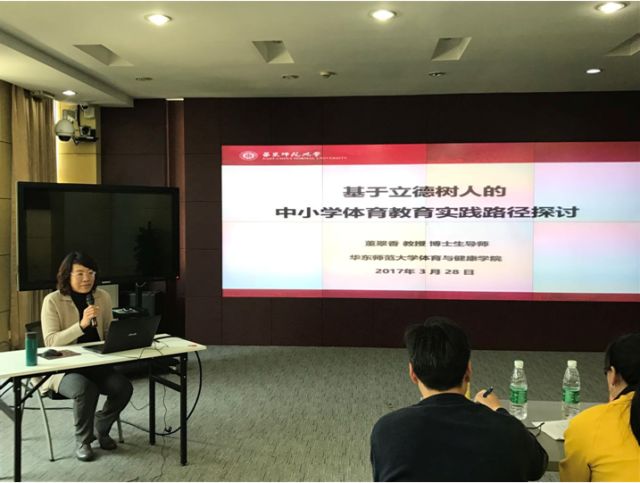 下午,由正妹av 体育教育系主任、博士生导师董翠香教授为全体学员做了《基于立德树人的中小学体育教育实践路径探讨》的专题报告。该报告从多维理解立德树人的含义、体育的重要性及其在立德树人中的作用、立德树人在核心素养中的体现、中小学体育落实立德树人的挑战与路径等四个方面进行了阐述。帮助学员很好地理清了立德树人、核心素养等概念,提出了今后应该从校本课程开发、课程教学模式应用、有效教学开展等角度推进中小学体育教学。
